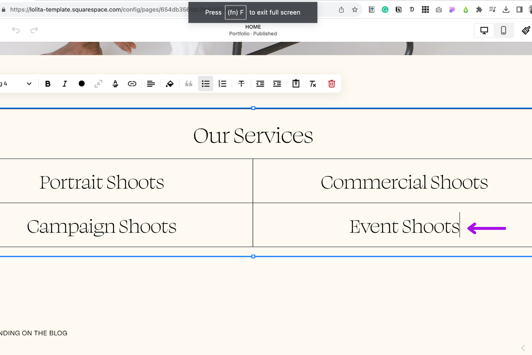 Open your Squarespace website editor.