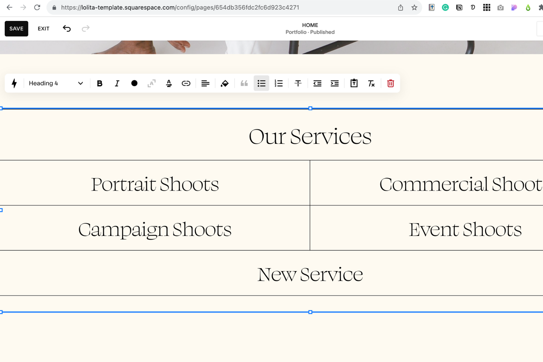 Place your cursor on the last service item, press "Enter" on your keyboard, and a new line will appear.